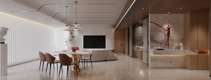 设计理念:全屋奢石打造,现代轻奢风格,四居室